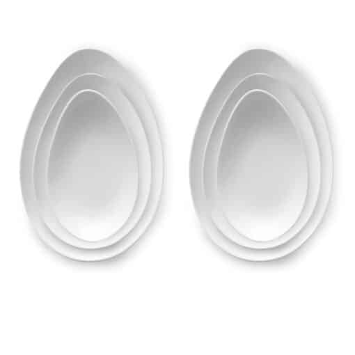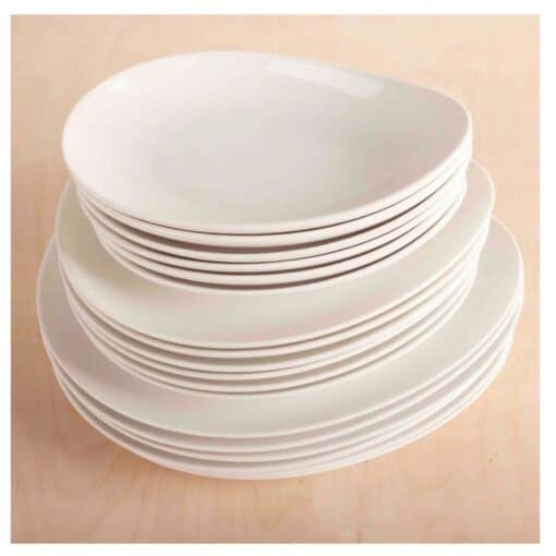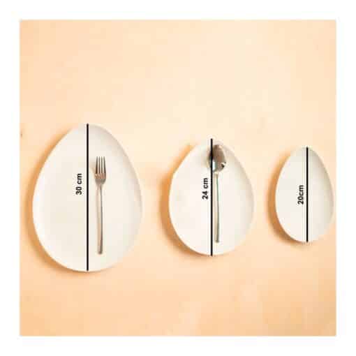 Juego de 6 platos de porcelana blanca dos comensales (6 piezas)2 de 30cm 2 de 24cm 2 de 20 cm Ovum, diseño moderno