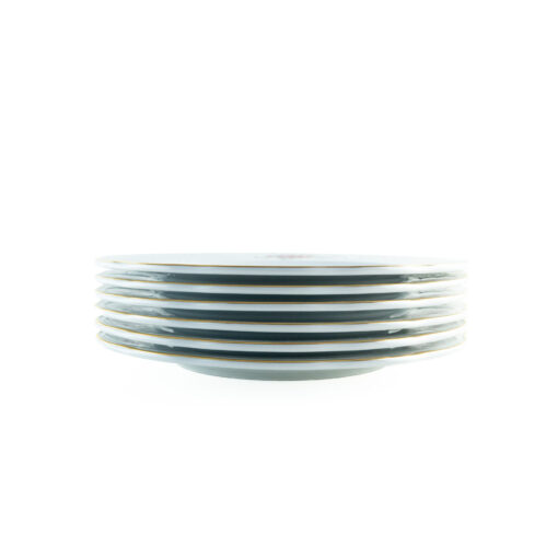 Juego de 6 platos llanos Bidasoa Irina en porcelana blanca con decoración floral y filo dorado. Elegancia atemporal para comidas diarias o celebraciones.